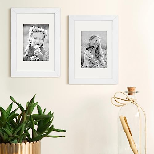 PHOTOLINI Cornici legno 10x15 cm con passepartout 7x10 cm, bianco, Made in EU, set di 2 cornici, plexiglass infrangibile, da tavolo o da parete, accessori extra - per foto e immagini