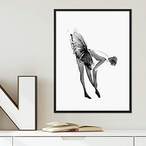 Photolini Poster di Design 'Ballerina', con Cornice Nera da 30x40 cm, Disegno ad Acquerello di Una Ballerina Classica in Bianco e Nero