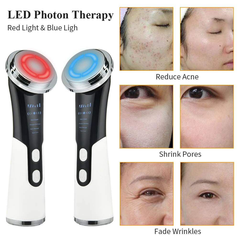 LED Photon Therapy Skin Rejuvenation Heating Face Lifting Firming Smooth Fine Lines Anti Aging Device Ion Micro Vibration