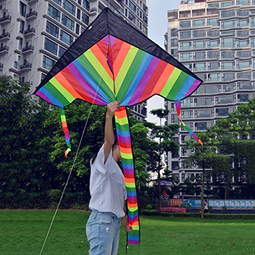 PHYNEDI Aquilone Arcobaleno per Bambini e Adulti Aquiloni a Linea Singola 113X62 cm incl. Stringa Aquilone 50m e Code da 147 cm