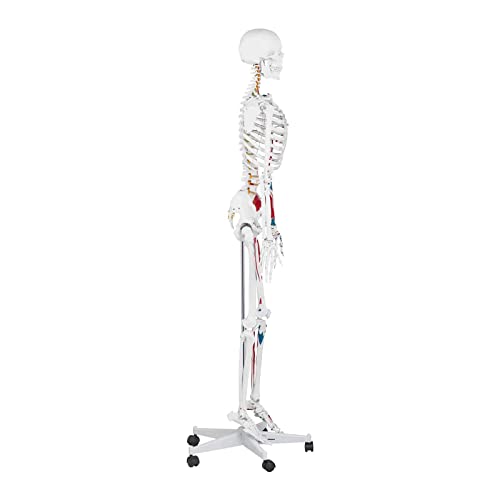 Oggetto ideale per l'insegnamento dell'anatomia umana con le connessioni muscolo-ossa evidenziate in rosso e blu