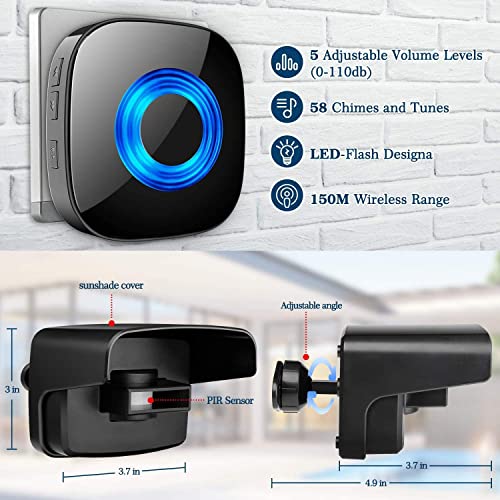 PHYSEN Campanello Senza Fili, Campanello Wireless Impermeabile con Raggio d'Azione di 300m 58 Suonerie 5 Volume Regolabile, 2 Trasmettitore e 3 Ricevitore per Casa, Negozio, Ufficio