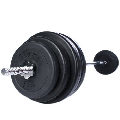 Physionics Set palestra panca pesi con bilanciere e set pesi dischi di plastica di 60 kg