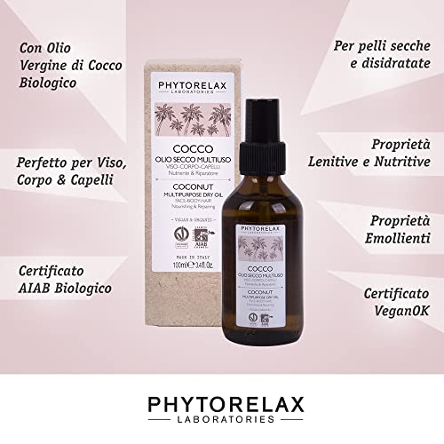 Phytorelax Laboratories Cocco Vegan & Organic - Olio Secco Multiuso - Viso -Corpo -Capelli - Nutriente & Riparatore, Avvolgente, Si Assorbe Subito - 100ml