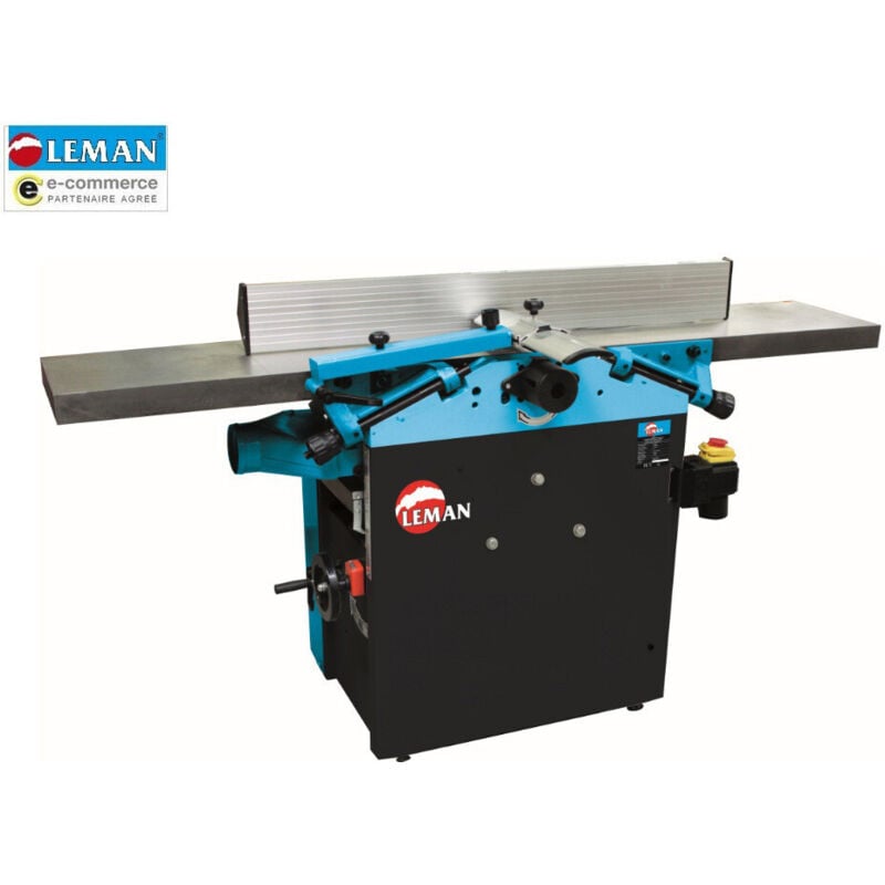 Dettagli: Motore potente, resistente e silenzioso da 3000W con freno Struttura rigida e robusta con telaio saldato, la macchina può essere spostata con un transpallet. Tavoli di piallatura in ghisa regolabili con labbri antirumore, lunghi 1610 mm. Steccato in alluminio profilato montato su una guida a coda di rondine in acciaio fuso, rigido e di dimensioni generose, inclinabile a 45°. I tavoli possono essere sollevati per la piallatura, senza dover smontare la guida. Apertura a farfalla grazie a potenti cerniere fissate al rinforzo del telaio in ghisa. Indicatore di posizione per l'altezza di piallatura. Tavolo di piallatura in ghisa montato su 1 albero centrale ø 110 mm e tenuto in posizione da un secondo albero. Avanzamento automatico disinseribile. Raccoglitore di trucioli con uscita di aspirazione Ø 100 mm, passaggio da piallatura a spessoramento semplicemente ruotando, con posizionamento automatico della valvola di aspirazione. Opzione mortasatura: mandrino da 16 mm