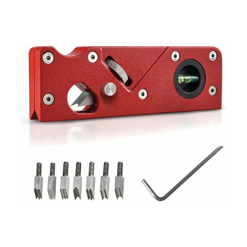 Piano di smusso di precisione: dotato di livelle a bolla orizzontali e verticali per una facile visualizzazione e livellamento. Esistono molti altri strumenti che possono essere utilizzati per questo scopo, ma le pialle angolari per la lavorazione del legno sembrano essere più veloci, più facili e più precise da mirare. È facile da smontare e montare, facile da combinare e facile da installare. Profondità di taglio regolabile: la profondità di taglio può essere regolata in base alle esigenze di lavoro. Una pialla angolare per la lavorazione del legno, un dispositivo per tagliare spigoli vivi e creare un profilo smussato o arrotondato. FACILE DA USARE: comodo da tenere e facile da usare. Piallatura piccola e portatile, facile da usare, più attenta e fluida. La pialla angolare per la lavorazione del legno consente rapidi lavori di pulizia dei bordi senza dover cambiare le punte nella fresatrice o collegare qualcosa. Materiale: realizzato in lega di alluminio spessa e plastica ABS. Buona