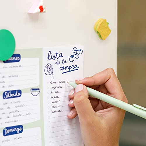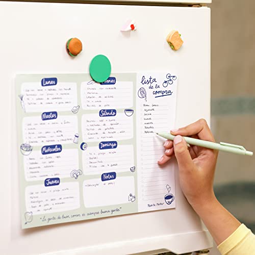 Design moderno e divertente: dai vita alla tua cucina con questo blocco note. Mostra questo planner casual verde e blu che aggiungerà un tocco divertente al tuo spazio.