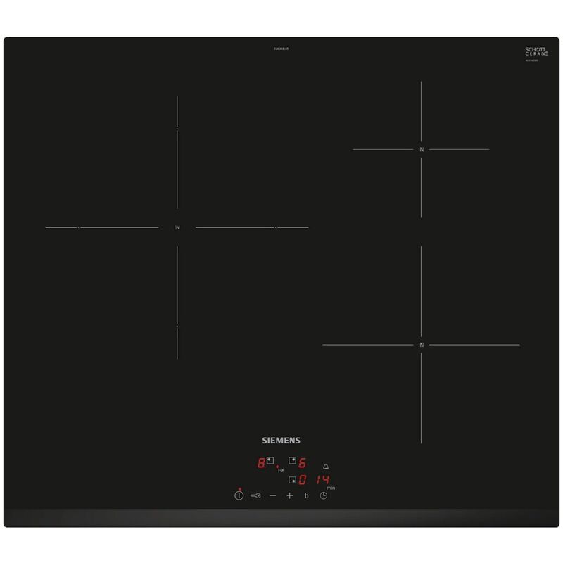 Piano cottura a induzione Siemens iQ100 EU63KBJB5E, una tecnologia innovativa che riduce i tuoi tempi di cottura, facilita la pulizia e ti offre più sicurezza. Il blocco bambini blocca tutte le funzioni, impedendo l'accensione accidentale. Timer con spegnimento automatico: la zona di cottura si spegne automaticamente allo scadere del tempo di cottura. Funzione powerBoost: fino al 50% di potenza in più su una zona a induzione. Il pannello touchControl consente un controllo molto preciso di ciascuna delle quattro zone di cottura. Tipo di prodotto: piano cottura a induzione. Tipologia piano cottura: Induzione. Tipologia incasso: Piano sovrapposto. Energia: elettricità. Cappuccio integrato: no. Numero di famiglie: 3. Pulsanti sensibili: sì. Tipi di controllo: TouchControl. Posizione di controllo: anteriore. Tipo di accensione: Elettronica integrata. Zona cottura modulare (flex): No. Camino più potente (W): 2600. Camino più potente con booster (W): 3700. Materiale della superficie: vetro.