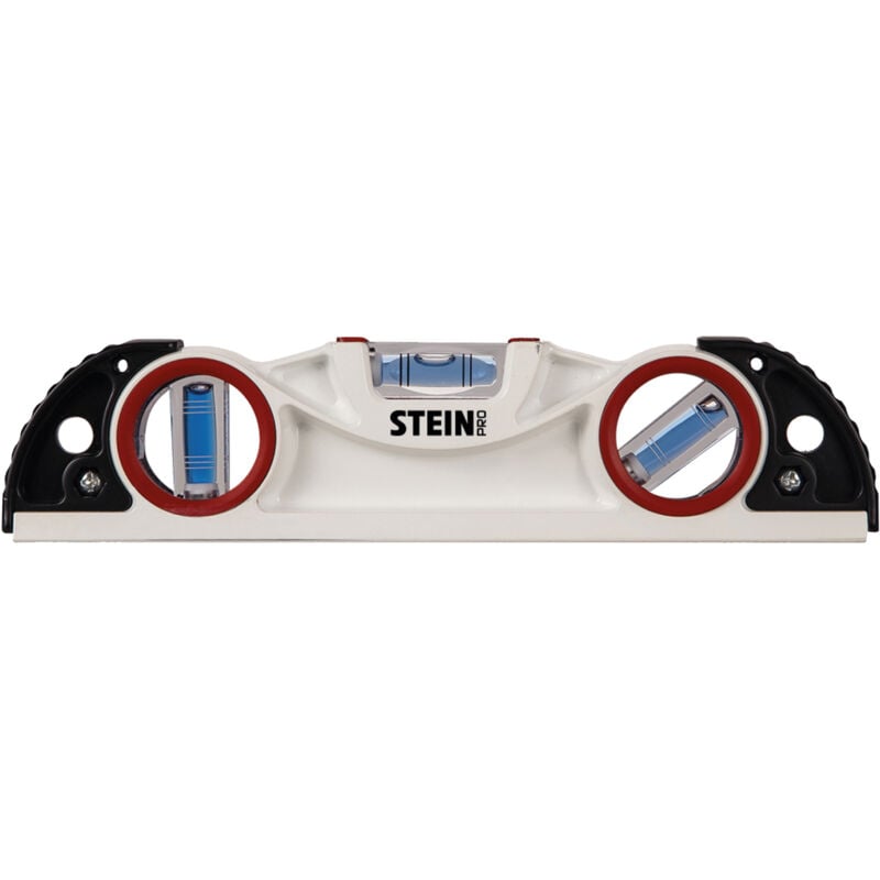 Livella per aereo STEIN in acciaio con protezione in gomma. Base magnetica con magnete al neodimio ad alta adesione. Include tre bolle per una calibrazione ottimale (0°, 45° e 90°). Misurazione, marcatura e livellamento in edilizia e fai da te. Livello professionale con doppi fori per appenderlo comodamente.
