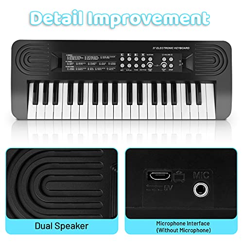 Pianola Bambini Musicale Tastiera Pianoforte Elettronica 37 Tasti Tastiera Portatile Pianola Multifunzione Mini Insegnamento Giocattolo Natale Regalo per Principianti Ragazzi Ragazze, Nero