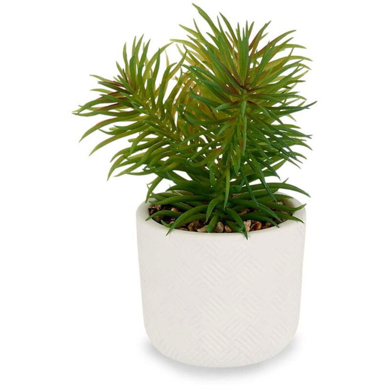 Trasformate la vostra casa con questa elegante pianta artificiale, perfetta per creare un'atmosfera naturale senza bisogno di manutenzione. Fornita in un elegante vaso bianco che si adatta a qualsiasi stile di arredamento. - Decorazione vivace: aggiungete un tocco di verde alla vostra casa o al vostro ufficio senza bisogno di annaffiature o manutenzione. - Design moderno: il vaso bianco conferisce un'atmosfera contemporanea e si sposa bene sia con gli interni classici che con quelli moderni. - Leggera e resistente: realizzata in plastica di alta qualità, questa pianta è leggera e resistente, ideale per essere collocata su varie superfici. Questa bellissima pianta artificiale con foglie sottili in un elegante vaso bianco è la soluzione perfetta per rinfrescare rapidamente e facilmente qualsiasi ambiente. Non richiede manutenzione e rimane verde e vivace tutto l'anno, rendendola una decorazione ideale sia per la casa che per l'ufficio. Il vaso ha un design moderno che si adatta bene a