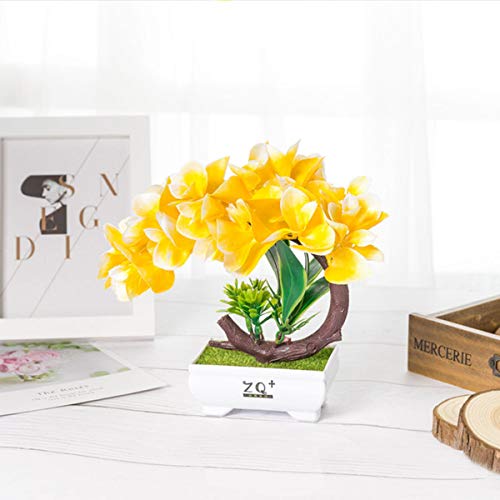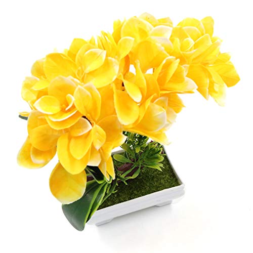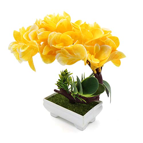 Pianta artificiale in vaso di bonsai, in plastica, piccola decorazione per ufficio, giardino, balcone, decorazione da tavolo e per esterni, regalo (giallo, 21 x 20 cm)
