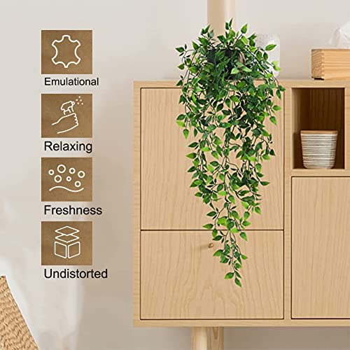 2 Piante Finte da Interno in Vaso: la confezione include 2 confezioni di vasi verdi per piante sospese, ciascuno con 5 biforcazioni, la lunghezza dei diversi rami è diversa e la lunghezza totale della vite artificiale è di 85 cm.