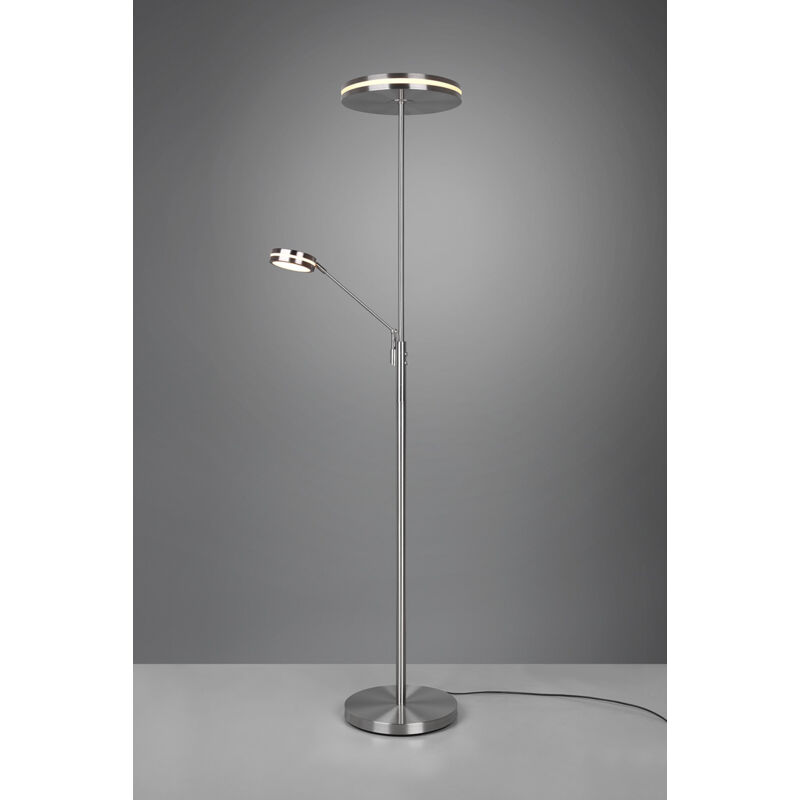 Piantana Piantana da Interno a LED SMD in Metallo Nickel Opaco Franklin Piantana Led con Lampada Lettura Metallo Acciaio con Regolazione Intensità Touch Dimmer + Regolazione Luce Calda, Naturale e Fredda e Funzione Memorizzazione H. 180Cm Caratteristiche Tecniche Stile Moderno Fonte di luce principale: Inclusa a LED Materiale: Metallo Colore Finitura: Nickel opaco Potenza (W): 35 Lumen: 4100 Kelvin: 2700+3200+4000K Alimentazione (V): 230 Durata Nominale (h): 20000 Numero Accensioni: 15000 Classe energetica: F Altezza (cm): 181 Diametro (cm): 35,2 Cavo-Base-Spina (mm): 1800 Colore del cavo: Nero Peso netto (kg): 6,48