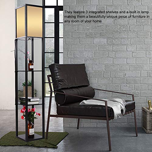Piantana in legno per illuminazione da interni con mensole per camere da letto e soggiorni(nero)
