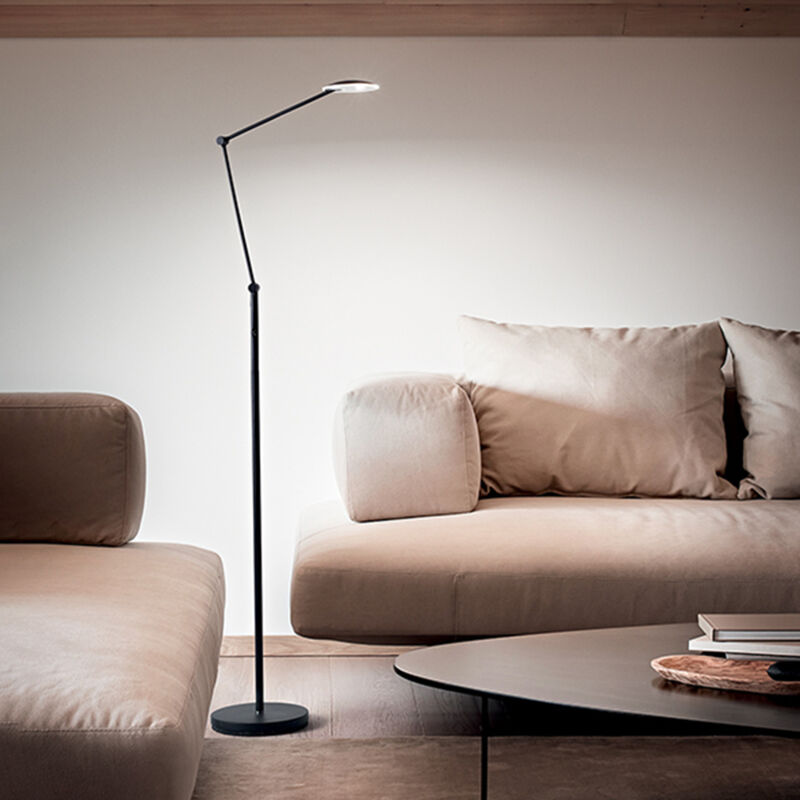Collezione Joint LA LAMPADA CHE SI ADATTA A TE Piantana in metallo nero è un elegante oggetto d'arredo che si distingue per il suo design minimalista e la sua funzionalità.. È orientabile in modo da offrire la massima flessibilità e adattarsi alle diverse esigenze di illuminazione. Dotata di un interruttore on/off, questa lampada è perfetta per creare un'atmosfera rilassante e accogliente in qualsiasi ambiente della casa, dallo studio alla camera da letto.