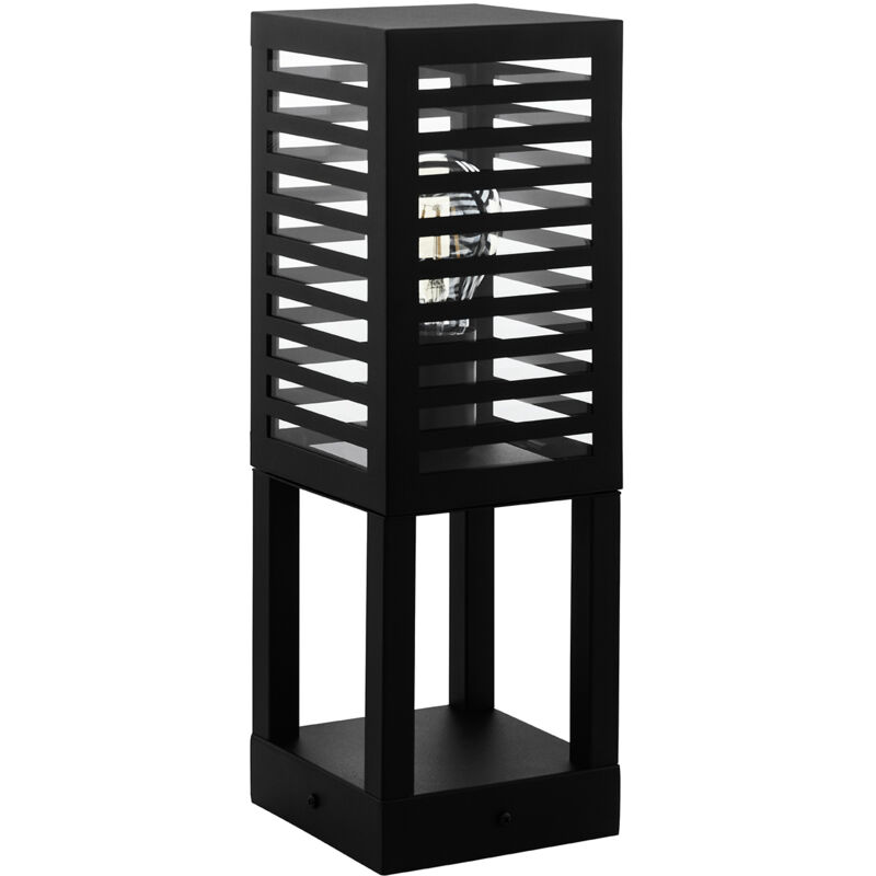 Collezione Alamonte 3 IL TUO SPAZIO ESTERNO ELEGANTE E ACCOGLIENTE La piantana ALAMONTE 3 è composta da un corpo in metallo nero a forma di parallelepipedo corredato di vetri nella parte superiore.. Il design striato completa il particolare look della lampada in modo elegante e crea al contempo una piacevole atmosfera illuminata con la sua luce indiretta. La piantana, grazie alla protezione anti-spruzzo (IP44), è senza dubbio ideale per l'impiego negli spazi esterni e si armonizza in modo eccezionale con qualsiasi ambiente esterno dalle sfumature moderne. La lampadina a filamento presente nell'immagine non è inclusa nella consegna. Per questa lampada per esterni è adatta qualsiasi lampadina con attacco E27.