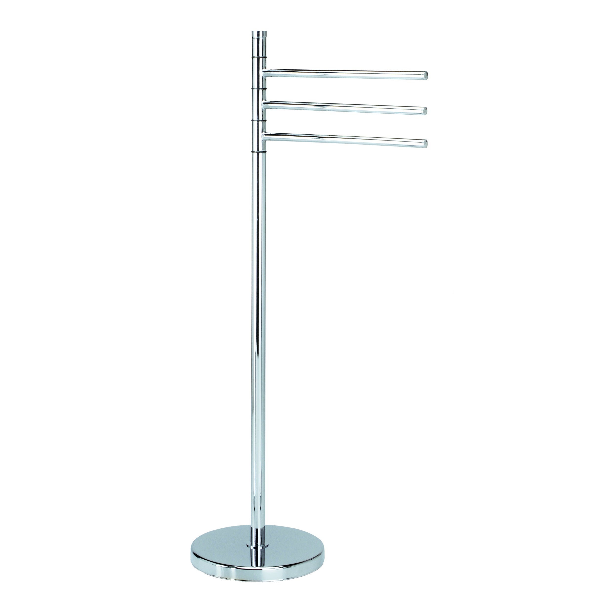 In acciaio cromo lucido, base tonda, braccetti girevoli. Pratici braccetti girevoli