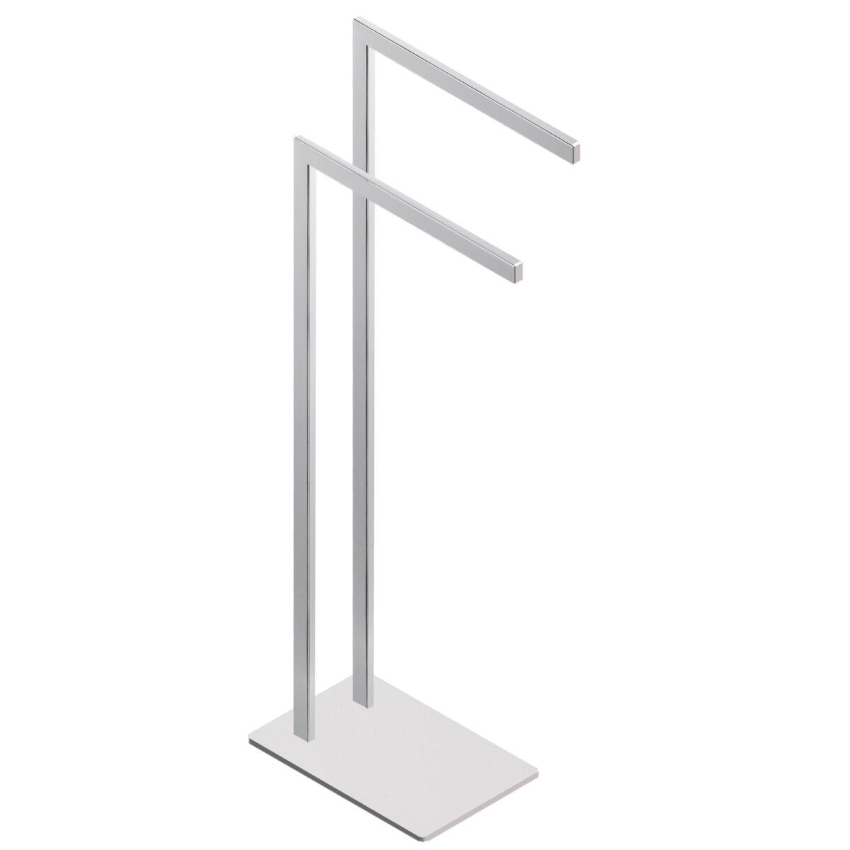 Piantana in acciaio cromo lucido, base rettangolare, braccetti fissi. SALVASPAZIO