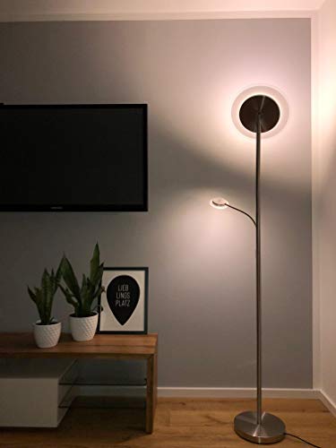 Piantana LED da terra dimmerabile, Lampada a stelo con luce da lettura orientabile, piastre LED integrate, Lampada da terra con interruttore touch, luce calda, metallo color nickel opaco, 230V, IP20