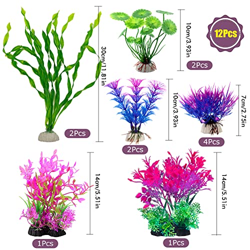 Piante acquario artificiali, 12 pezzi plastica piante acquatiche Realistico piante acquario finte piante artificiali acquario Set di decorazioni per acquario (5-30 cm)