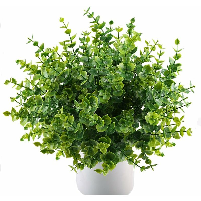 La pianta di eucalipto artificiale è realizzata in plastica morbida, può piegarsi e facilmente rimodellare, le splendide foglie verdi artificiali non sbiadiscono e non cadono nel tempo. Le piante di plastica finta sono impermeabili e resistenti ai raggi UV per uso esterno, perfettamente verde brillante tutto l'anno e completamente esente da manutenzione. Le foglie artificiali degli arbusti aggiungono un gradito tocco di colore per te e facili da organizzare per creare un'esposizione accattivante. pCespugli artificiali ideali per esporre una fioriera, o da mettere in un vaso da aggiungere a casa, all'aperto, in ufficio, in cucina, davanzale, per matrimoni o per riempire un vecchio barattolo. L'arrivo include 2 mazzi di piante finte artigianali e ognuna ha 7 piante artificiali, lunghezza totale circa 34 cm, vaso largo natura: circa 16,5 cm (non incluso).