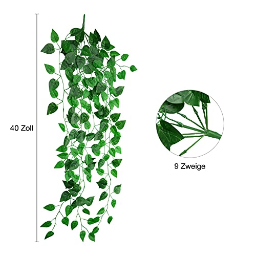 Dimensioni della quantità: la confezione include 2 piante artificiali sospese, ogni edera ha 9 rami e ogni pianta misura circa 101,6 cm. La testa del ramo è pieghevole.