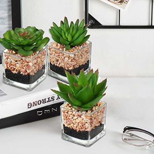 Design e dimensioni realistiche: un set di 3 mini piante grasse artificiali in vaso di vetro. Dimensioni intere: 5,48 cm x 11,43 cm (2,16"x 4,5") piante in vaso finte con colori vivaci e squisita fattura per una sensazione realistica quando le tocchi.