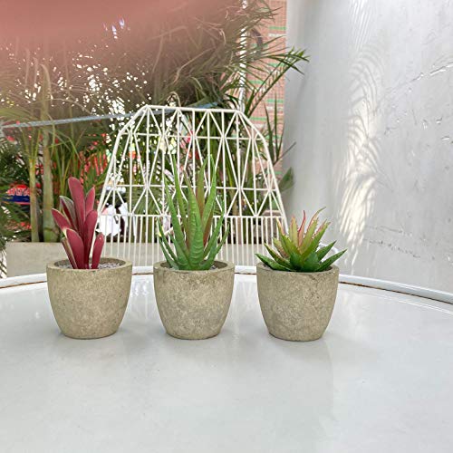Mini piante grasse finte, 3 pezzi di piante succulente artificiali, piante succulente finte per scrivania, casa, arredamento per ufficio con vasi grigi