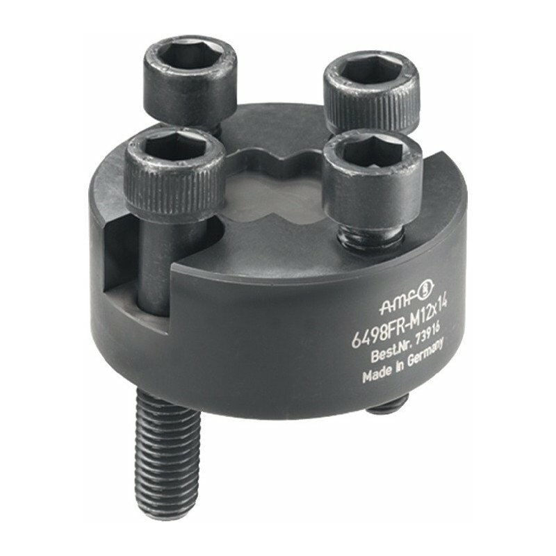 Rotondo · per tensionatore laterale n. 6498 · completo di viti di fissaggio · Corpo di base in acciaio inserto, nitrided · Fissaggio mediante viti della classe di resistenza 10.9 · Applicazione: Utilizzare insieme al tensionatore laterale n. 6498 per bloccare trasversalmente e longitudinalmente alla scanalatura del tavolo. La dimensione M16x18 può essere utilizzata sulla piastra a griglia M16. Altre caratteristiche tecniche: · D: 78 + 2 mm · G: M16 · E3: 25,5 mm · Scanalatura: 18mm · Forma: rotonda · E4: 25,5 mm · G3: M6mm · R: 50mm · B3: 20mm · H: 50mm