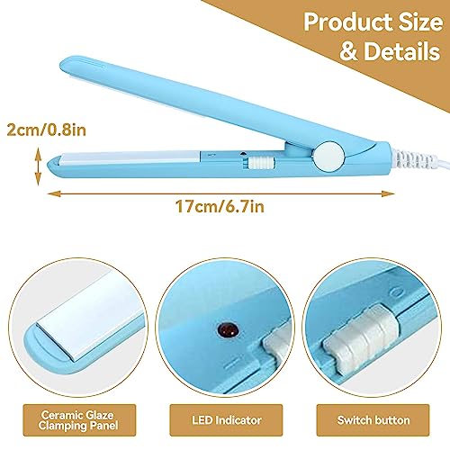 Mini piastra per capelli 2 in 1, bigodini per capelli in ferro arricciacapelli piatto in ceramica portatile per barba(EU Plug-Blu)