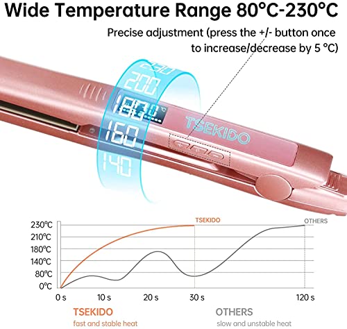 Piastra per capelli 2 in 1 e ferro arricciacapelli. TSEKIDO ferro arricciacapelli di alta qualità a pelo corto hanno un design sottile e una vasta gamma di impostazioni di temperatura. Per diversi tipi di capelli o stili, puoi scegliere tra 80-230 gradi per creare onde dritte, ricci, ondulate o curve.