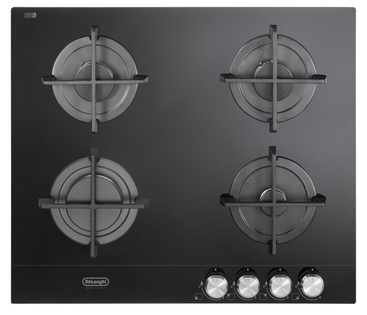 Materiale: vetro temprato nero, dimensioni l60xp51 cm, nr fuochi: 4, griglie: ghisa, posizione comandi: frontale. La valvola di sicurezza consente di evitare le fuoriuscite accidentali di gas in casa