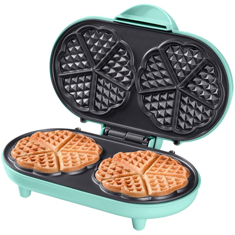 Con questa macchina doppia per waffle a cuore ADWM1000M della Bestron, potete preparare i waffle più deliziosi a forma di cuore in pochissimo tempo! I waffle a forma di cuore sono il regalo perfetto per bambini e adulti. La macchina per waffle è super facile da usare con le sue piastre per waffle antiaderenti, garantendo una pulizia minima in seguito. Il ferro ha una luce che indica quando è acceso e vi fa sapere quando i vostri waffle sono pronti per essere mangiati. Questo prodotto offre un controllo della temperatura dall'alto verso il basso, riscaldamento su entrambi i lati, temperatura costante e calore uniforme. La macchina per waffle occupa pochissimo spazio sul bancone con il suo spazio di stoccaggio verticale salvaspazio. Potete seguire le ricette nel manuale incluso per creare i vostri waffle, sia che li mangiate per una lussuosa colazione del fine settimana, sia che ne preparate alcuni per uno spuntino dolce per il tè o caffè pomeridiano, o addirittura ne preparate uno per