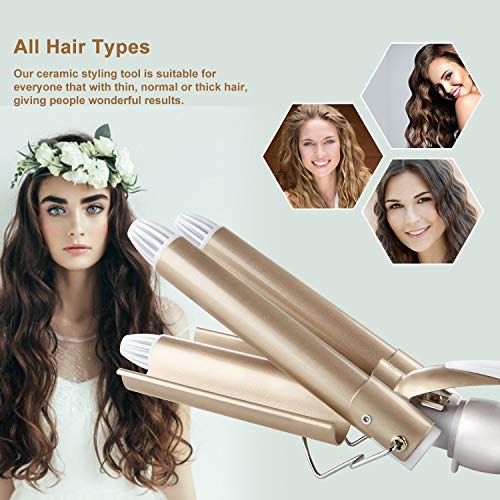 3 Tubi Piastra Onde Ferro Arricciacapelli, Piastra per Capelli Onde 3 Rami, Ferro Capelli con Tridente Piastra Onde Larghe, Temperatura Regolabile, Arricciacapelli 22mm per Mossi Ricci Waves Capelli