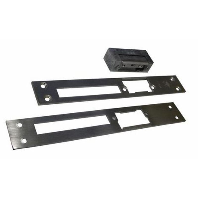 Per porte in alluminio - Da abbinare a serrature con scrocco - Tensione 12 V c.a. - N.B. La foto e' indicativa e comprende sia le due piastre che l'incontro elettrico (venduto a parte) Articolo 05021.02 Frontale 34x2x240 mm. Verso SX