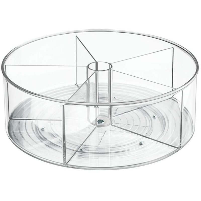 Nei 5 scomparti dello scaffale girevole, puoi organizzare alimenti, pacchetti e altri oggetti in modo ordinato, risparmiando spazio. Poiché il vassoio girevole è trasparente, il suo contenuto è facilmente visibile. Il sistema di rotazione consente un facile accesso anche negli armadi profondi. La base girevole è perfetta come servizio da tavola per latte, zucchero o snack, così come in ufficio per cancelleria o utensili. Con una dimensione di 29,2 cm (diametro) x 10,7 cm, il vassoio girevole si adatta facilmente al piano di lavoro. Può anche essere posizionato nella dispensa. Il supporto girevole è realizzato in plastica resistente e può resistere facilmente all'uso quotidiano. Può essere utilizzato anche in bagno. Dimensioni: 29,2 cm x 10,7 cm. Materiale principale: Plastica.