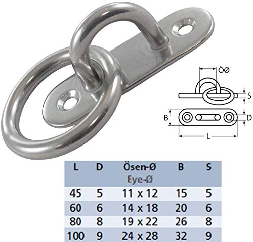Piastra con occhiello ovale in acciaio inox A2, 45x15