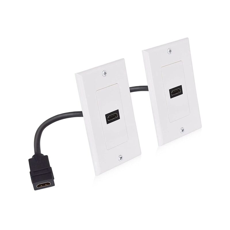 Le piastre da parete di dimensioni Standard da 4.5x2.7 pollici possono essere montate con una bassa tensione a banda singola StaffaInserto accoppiatore HDMI con una porta femmina sulla piastra a parete anteriore e un cavo pigtail HDMI sul retro si collega facilmente a un cavo HDMI run in the wall;