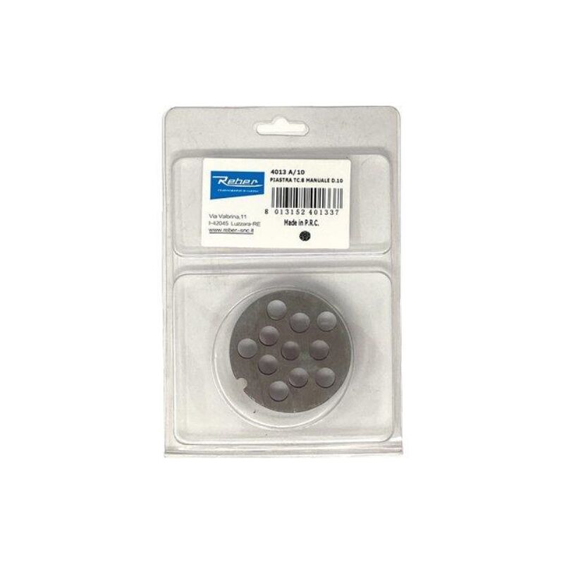 Piastra x tritacarne manuale reber N° 8 foro 10 in acciaio al carbonio.