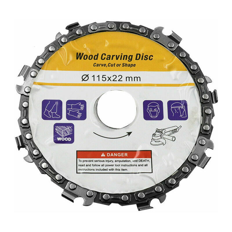 Descrizione È un accessorio per utensili abrasivi, facile da usare e da installare, ha una lunga durata. Caratteristiche: 1.Può essere utilizzato in qualsiasi direzione, denti della sega convenienti, azione anti-contraccolpo. 2. La motosega a disco abrasivo elimina il lavoro muscolare dal taglio, dall'intaglio, dalla rimozione e dalla modellatura di legno, plastica, ghiaccio e gomma dura grazie alla sua velocità e manovrabilità. 3.La catena della lama della sega è tenuta in posizione tra due piastre d'acciaio, fornendo una presa sicura per l'intaglio. Indipendentemente dalla grana o dai nodi, la lama taglia il materiale con facilità per l'utente. 4.Le catene possono essere affilate con una lima per motosega o sostituite se necessario. < p>5.Ideale per lavori curvi, come l'interno delle ciotole, per un rapido smaltimento dei rifiuti. Specifiche: 1.Materiale: lega dura 2.Colore: argento+oro 3.Diametro: 115 mm 4.Albero: 22 mm (7/8') 5.Denti: Diametro 115 mm: 8 denti 6.Velocità