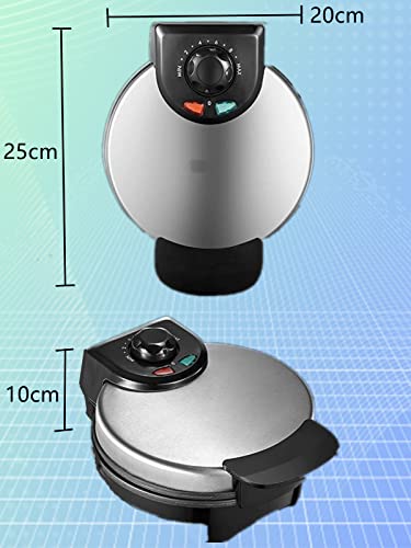 Piastra per Waffle per Cialde Rotonde Classiche, Piastra Waffle Belga 850W, Dimensione Cialda 20 cm, Grado di Doratura Regolabile in Continuo, Rivestimento Antiaderente, Argento