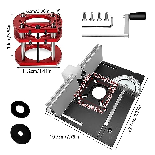 Set di piastre per fresatura, fresa superiore, set di accessori include 1 tavolo superiore e router lift, router table con calibro obliquo, fresatura per pianificazione, sollevamento fresa massimo 51