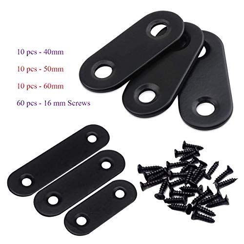 Piastre di Giunzione,Liwein 30 Pezzi Riparazione Staffe Angolare Piatte Staffa Fissaggio in Metallo con Viti di Fissaggio Acciaio Inossidabile Piastre di Giunzione per Riparazione Nero