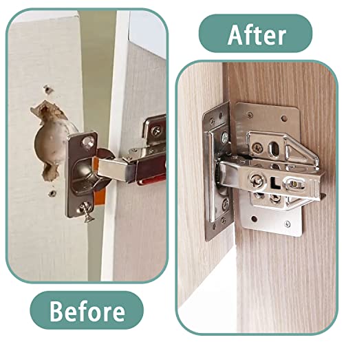 ⚙️ [Facile da usare]: ogni set delle nostre staffe di riparazione viene fornito con 6 viti corrispondenti e 2 diversi tipi di staffe di riparazione delle cerniere, tutto ciò che devi fare è stringere le viti superiori con un cacciavite o un trapano elettrico per allineare i fori. La piastra di riparazione della cerniera in acciaio inossidabile è di colore argento e non si distingue con la maggior parte dei mobili.