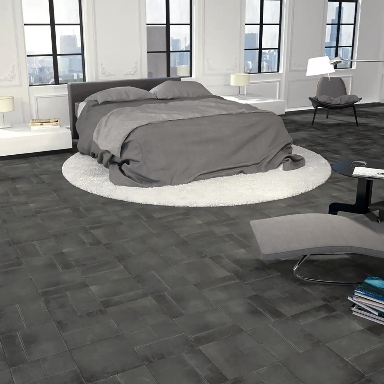 In monocottura pasta rossa. Effetto Cemento. Confezione da 1,00 m². Ideale per posa a pavimento o a parete in ambienti interni alla casa. Resistente ad un calpestio medio. La finitura della superficie permette una facile pulizia. La superficie opaca è molto pratica per la manutenzione ed è resistente nel tempo