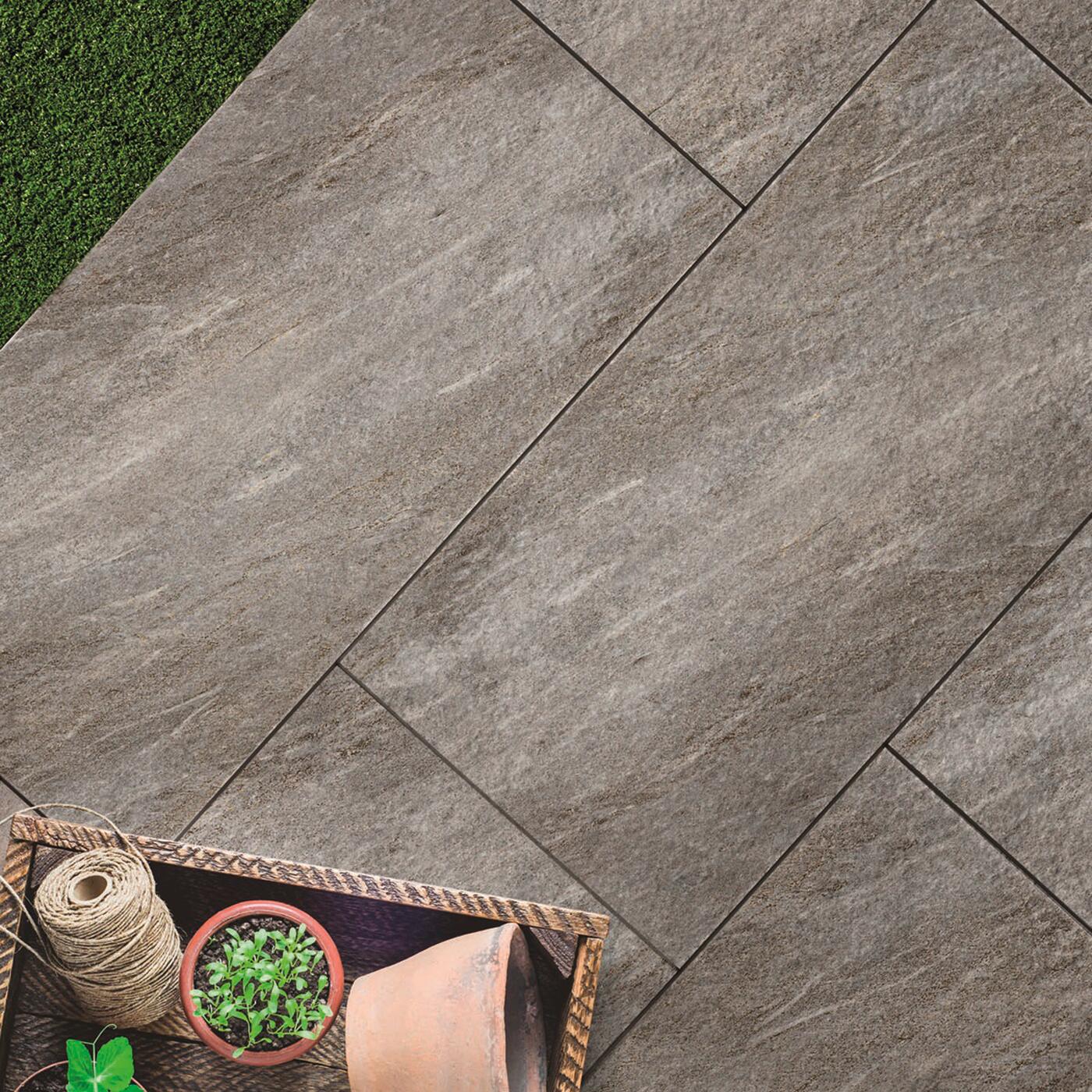 In gres porcellanato, bordo piastrella dritto. Norma antiscivolo R11
