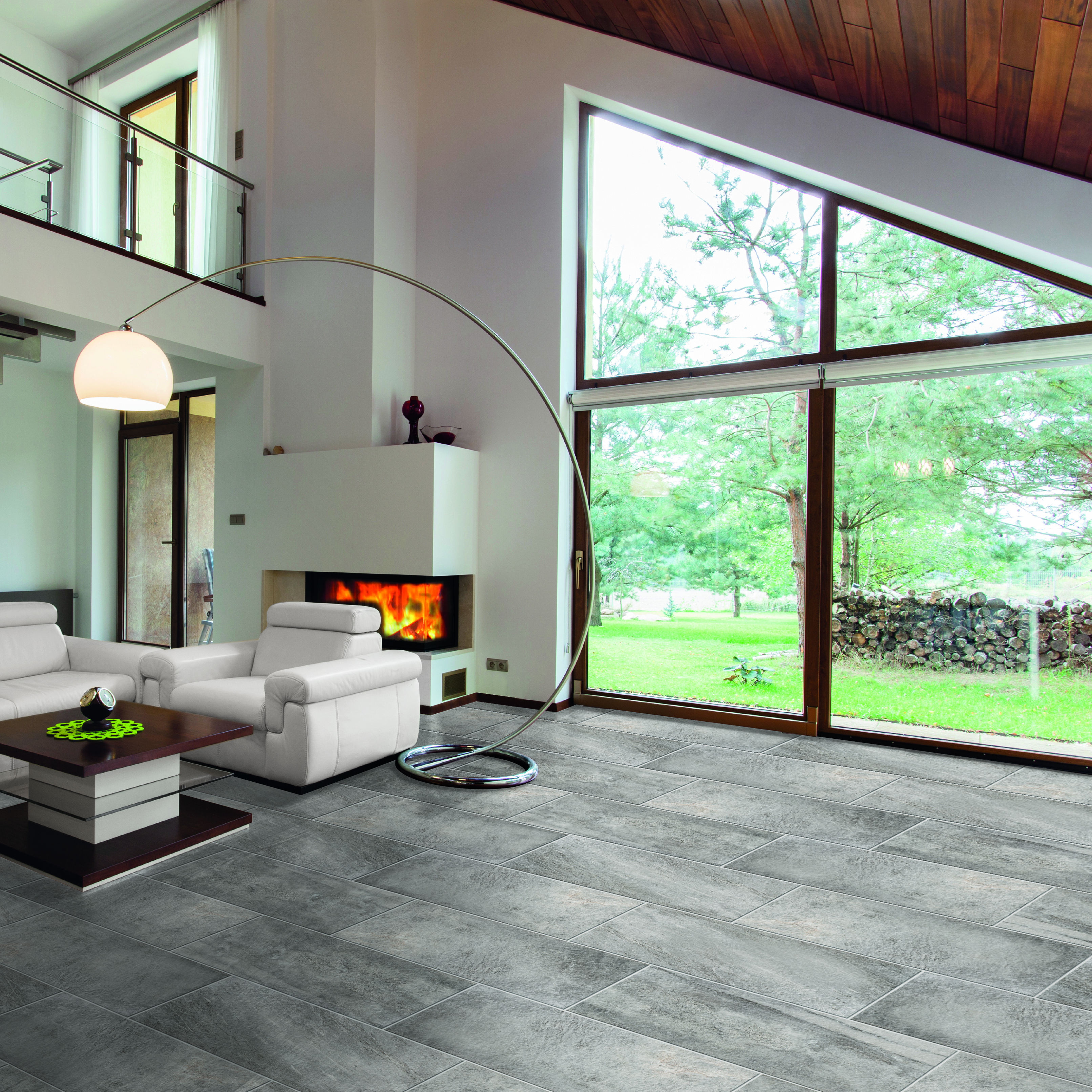 In gres porcellanato, bordo piastrella dritto. Norma antiscivolo R9