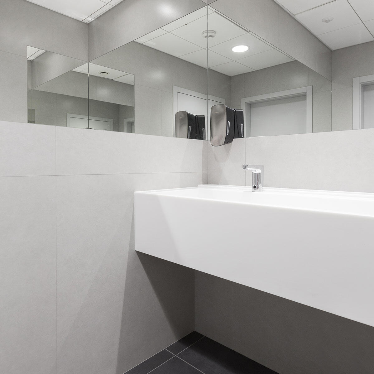 Piastrella rettangolare in gres porcellanato dal colore grigio con effetto cemento ideale per interno