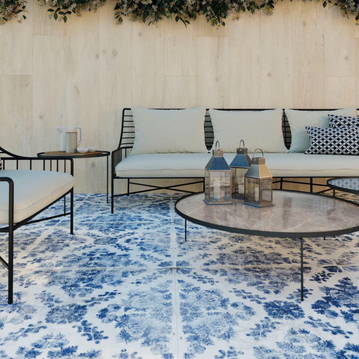 Piastrella decorate da esterno spessore 2 cm. Confezione da 2 pezzi. Idealeper posa a secco su ghiaia, sabbia, erba o sopraelevato con piedini.